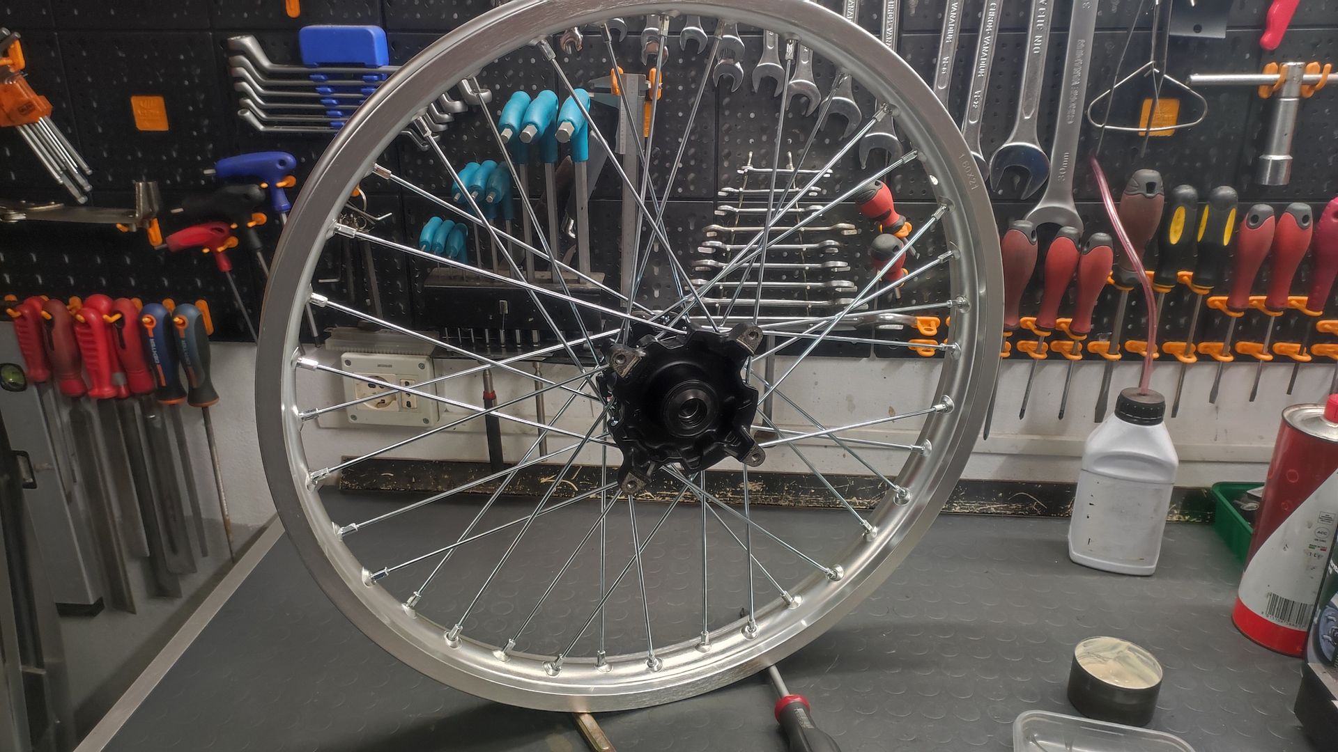 questo il risultato finale, con cerchio e raggi nuovi. bellina la rotellina, eh...?