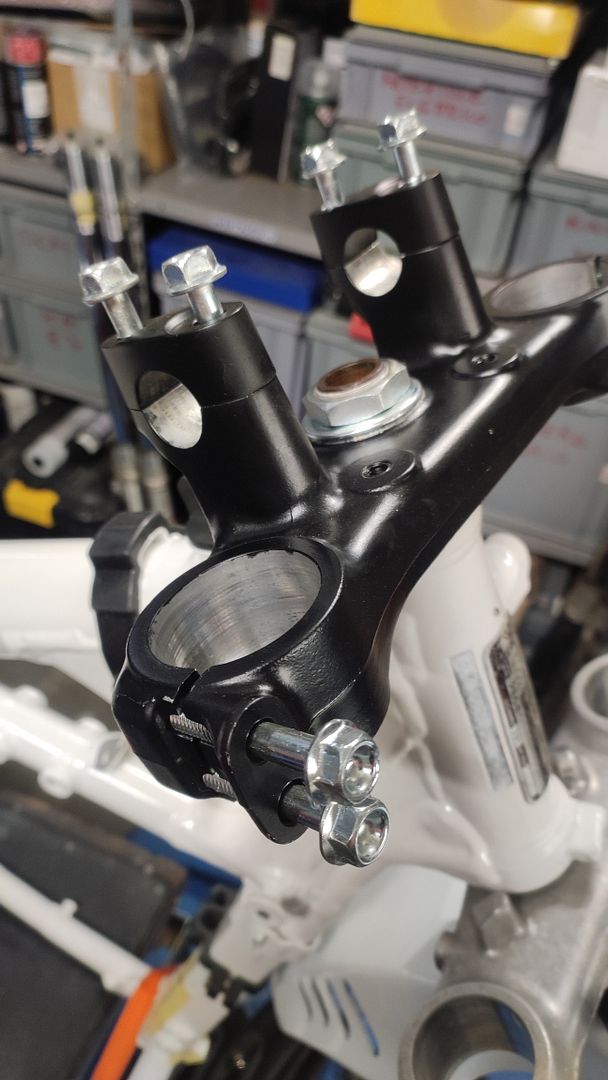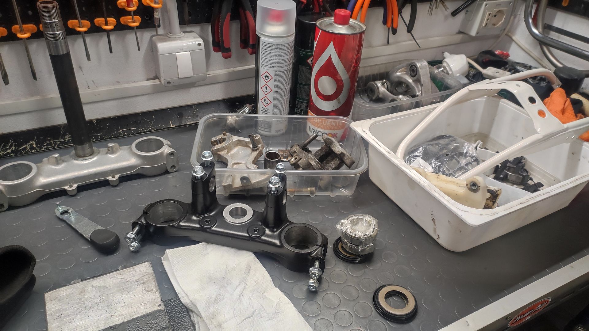 qui già in stato avanzato, con le piastre montate ed i cuscinetti di sterzo nuovi. Telaio ovviamente fatto a polvere. alcuni dettagli...