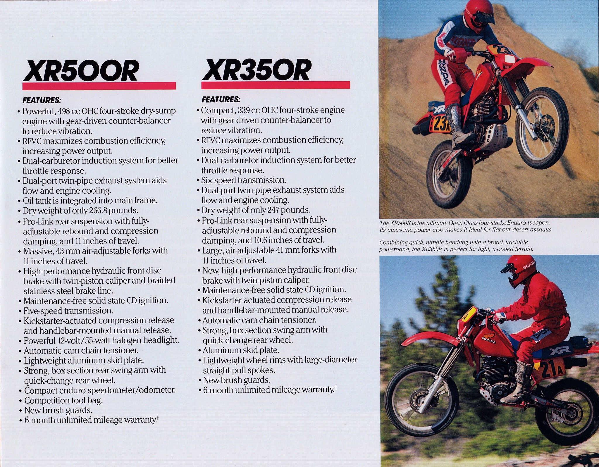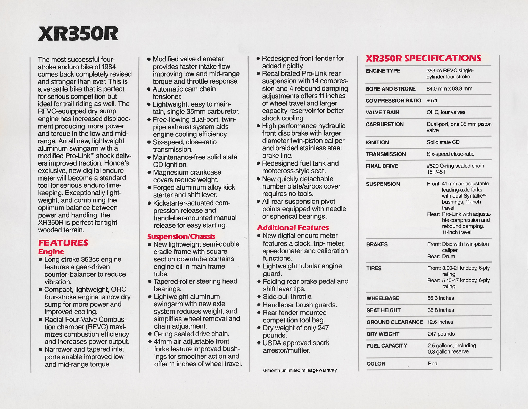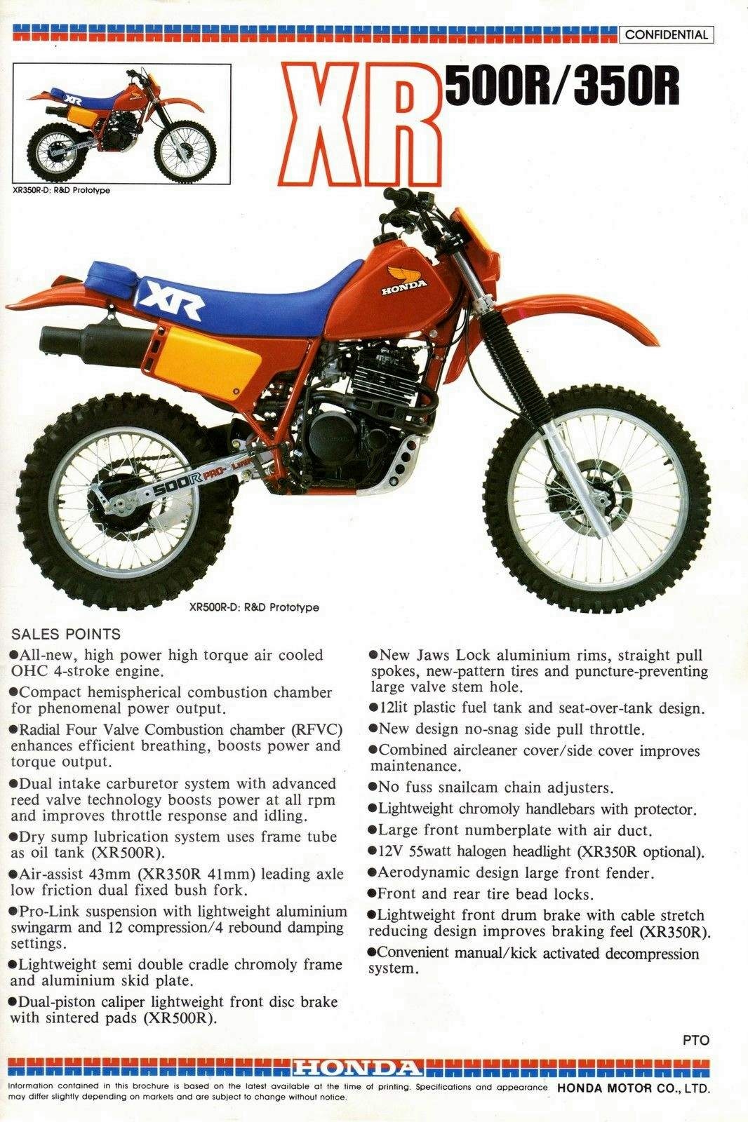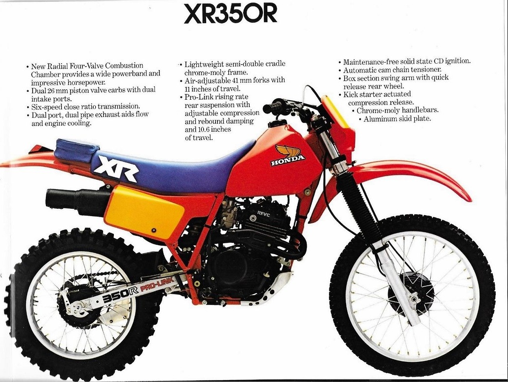 Nel 1983, derivata dalla rinnovata sorella maggiore XR 500R vede la luce l’XR 350R, con le medesime caratteristiche di ciclistica ed estetica, solo con una cilindrata minore.