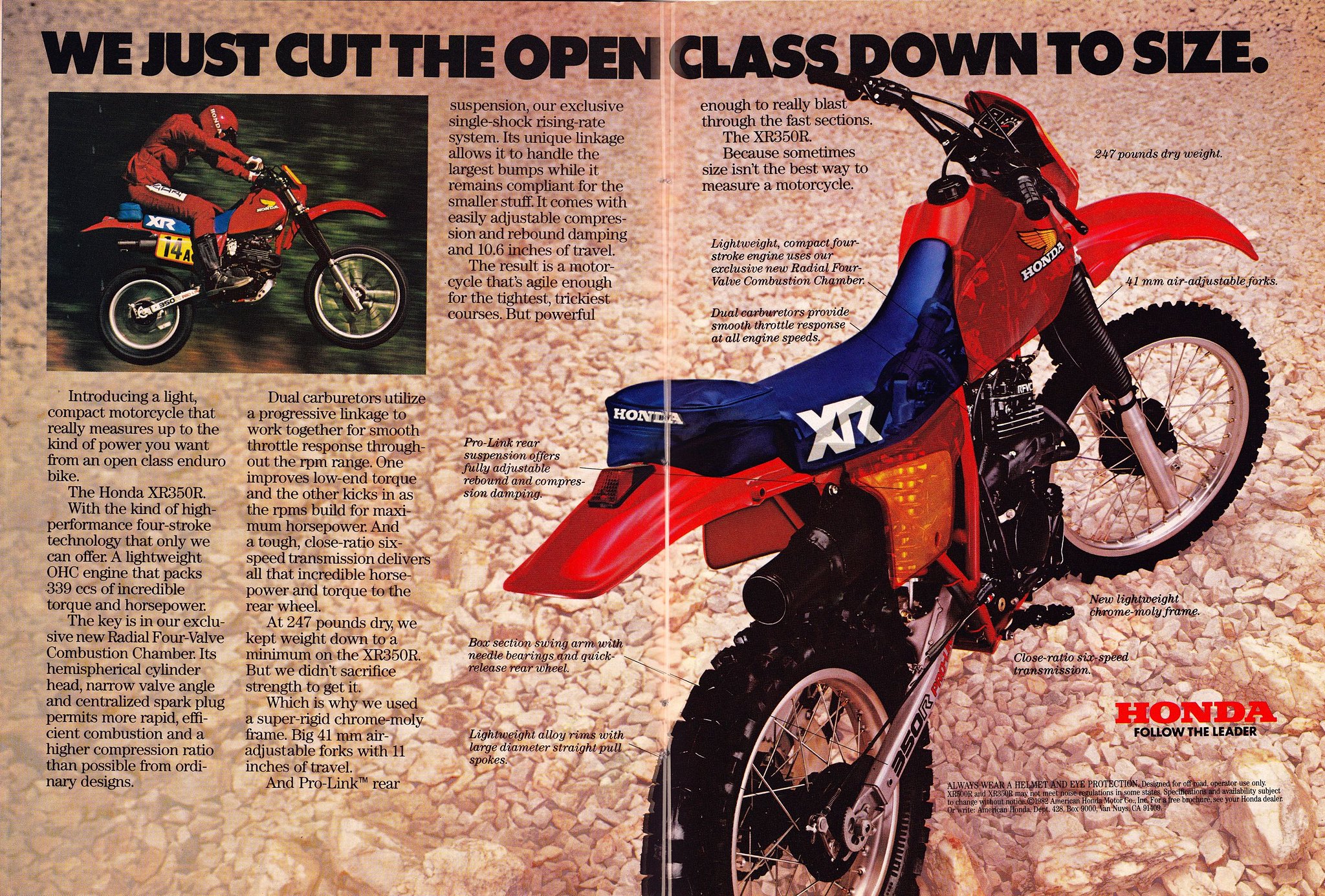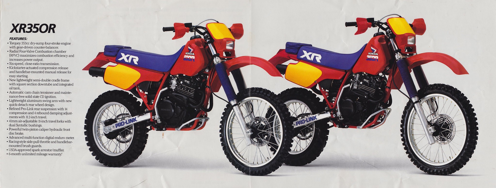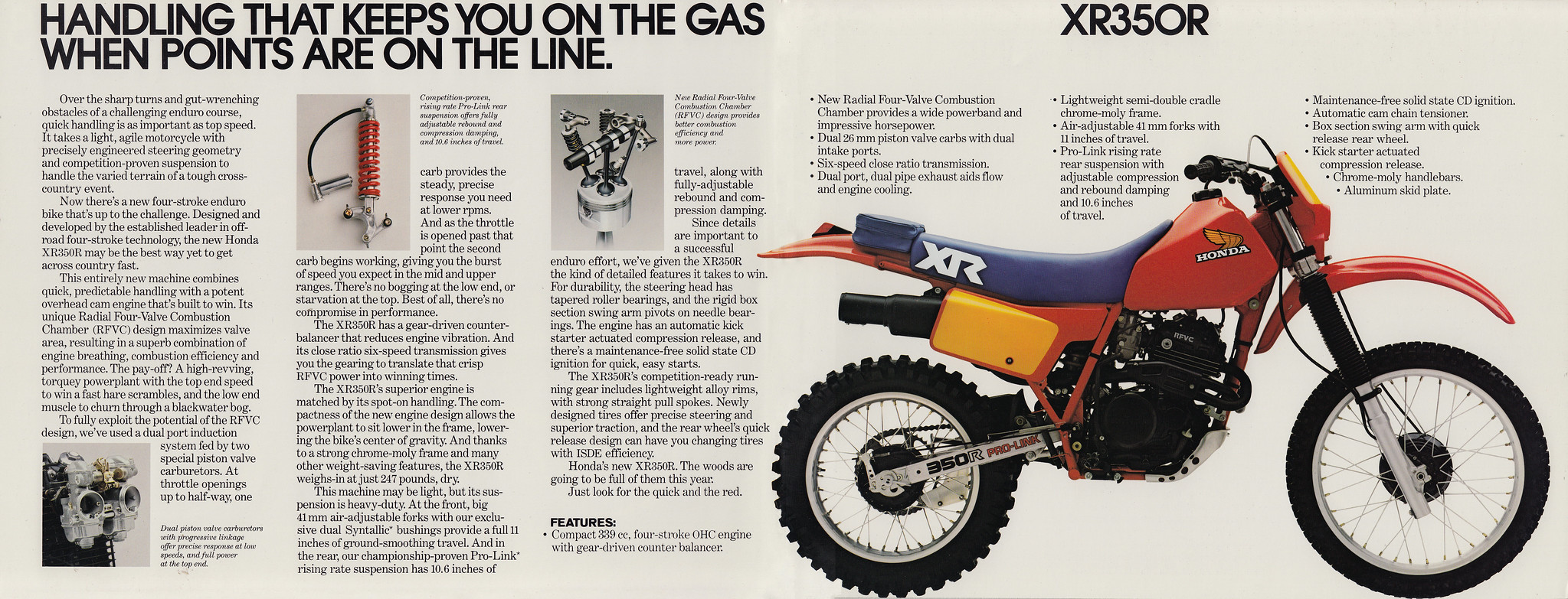 Nel 1983, derivata dalla rinnovata sorella maggiore XR 500R vede la luce l’XR 350R, con le medesime caratteristiche di ciclistica ed estetica, solo con una cilindrata minore.
